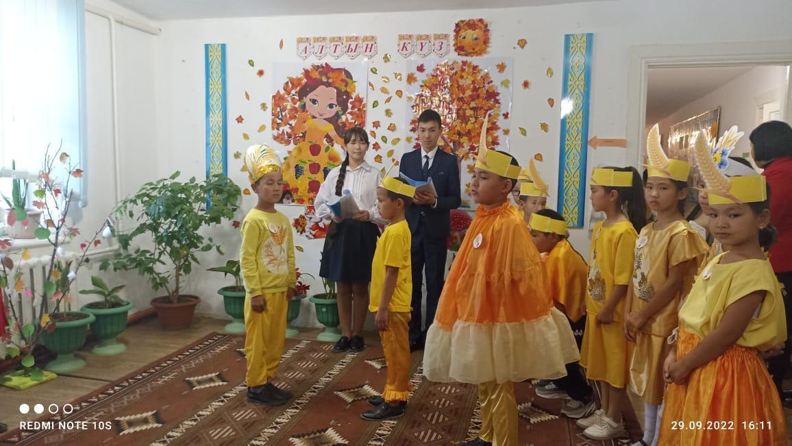 «Сағакүрес негізгі орта мектебі, мектепке дейінгі шағын орталығымен» коммуналдық мемлекеттік мекемесінде 2022 жылдың 29 қыркүйегі күні химия-биология пәнінің мұғалімі А.К.Саудабекованың ұйымдастыруымен бастауыш сынып оқушыларымен "Алтын күз" мерекесі өтті. Мақсаты: Балаларға жыл мезгілдерінің айырмашылығы мен зор байлықтары туралы толық түсіндіру, әр мезгілдің өз қызығы мен сәні бар екенін ұғындыру, күз айларының халыққа молшылық алып келетінін, қуаныш сыйлайтынын жеткізу, балаларды бір – біріне сыйластықты, ауызбіршілікті болуға шақыру, өнерге деген қызығушылықтарын ояту және сөз қорларын байыту.