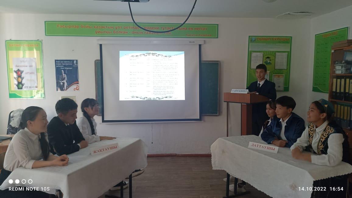 Жетісу облысы Білім беру басқармасының Ақсу ауданы бойынша білім бөлімі» мемлекеттік мекемесінің «Сағакүрес негізгі орта мектебі, мектепке дейінгі шағын орталығымен» коммуналдық мемлекеттік мекемесі бойынша 2022 жылдың 26 қыркүйек күні дебат қозғалысының жетекшісі А.К. Бакежанованың ұйымдастыруымен 8-9 сынып арасында "Ойдария" дебат клубының Тілдер мерекесіне орай "Тіл біздің байлығымыз" атты пікірсайыс өтті. Мақсаты: Қазіргі таңда мемлекеттік органдар мен ұйымдарда, қоғамның жан-жақты салаларында мемлекеттік тілдің мәртебесін көтеру мақсатында нақты қадамдар жасалуда. Басты мақсат – тілдік мұраны сақтап, қоғамдық өмірдің барлық саласында қазақ тілінің қолданылуын қамтамасыз етіп, оның барынша дамуына қол жеткізу.