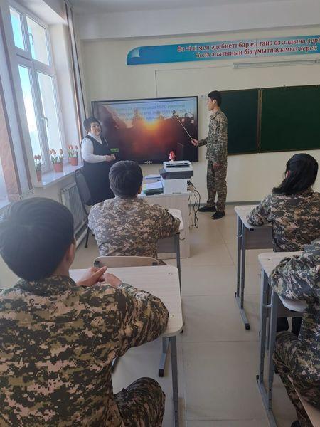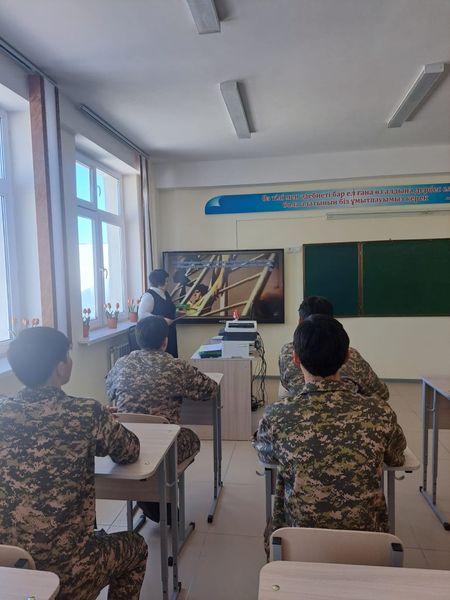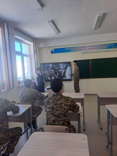 Жетісу облысы, Ақсу ауданы, Сағакүрес орта мектебінде 2024 жылдың 08 ақпан күні 9- 10 сыныптарға қазақ тілі мен әдебиет пәнінің мұғалімі: Д.А.Кызайбаева Кеңес әскерлерінің Ауған жерінен шығарылғанына 35 жыл толуына орай деректі фильм көрсетті.
