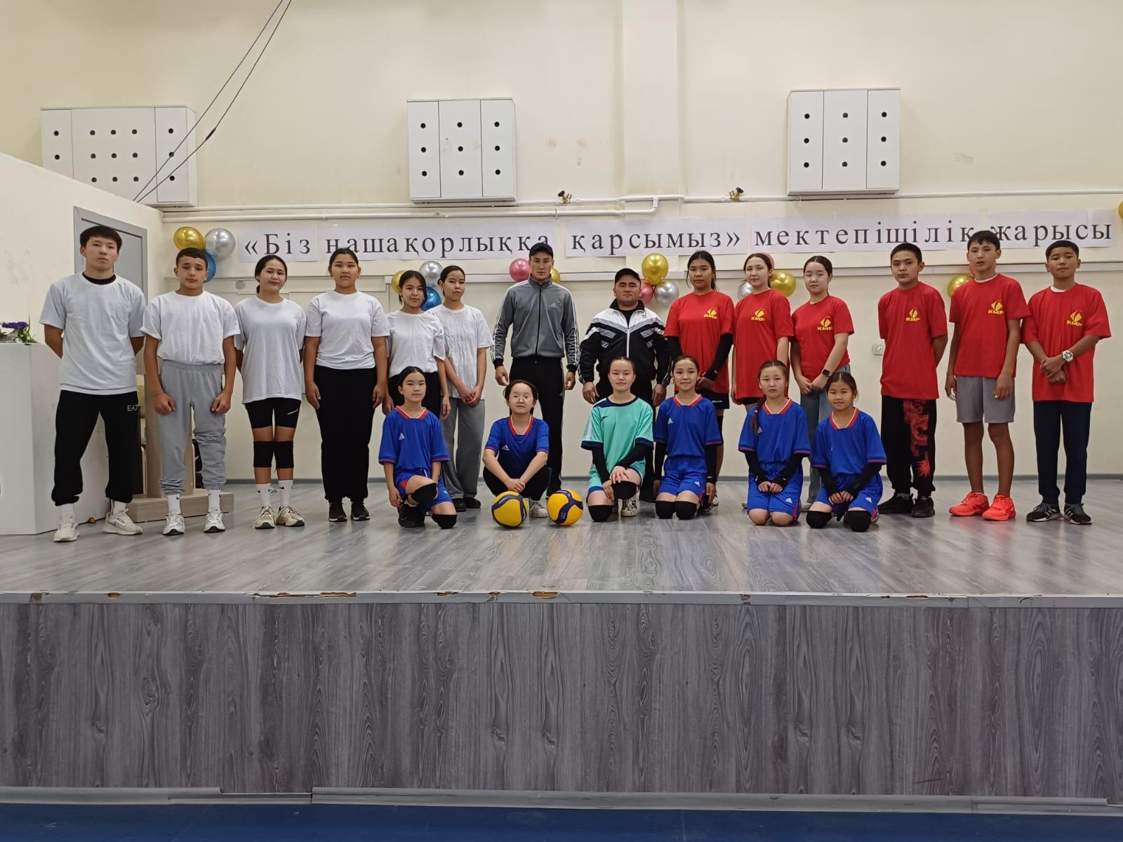 Жетісу облысы білім басқармасының Ақсу ауданы Сағакүрес орта мектебі, мектепке дейінгі шағын орталығымен" КММ-де 2024 жылы 29-қазан күні "Нашақорлыққа қарсы күрес және оның алдын алу" мақсатында 5-11 сынып (ұл, қыз) оқушылары арасында волейболдан мектепішілік жарыс болып өтті.